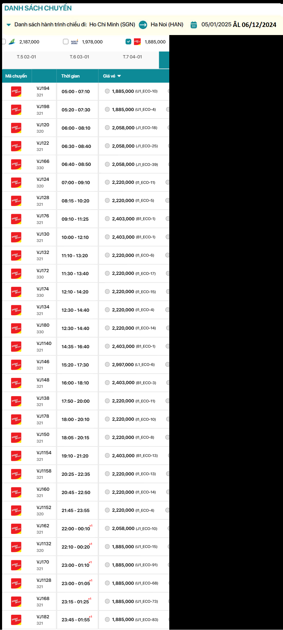 Hãng Vietjet Air VJ321 Bay thẳng Hạng Eco 06:25-07:25 vé máy bay 1,194,000