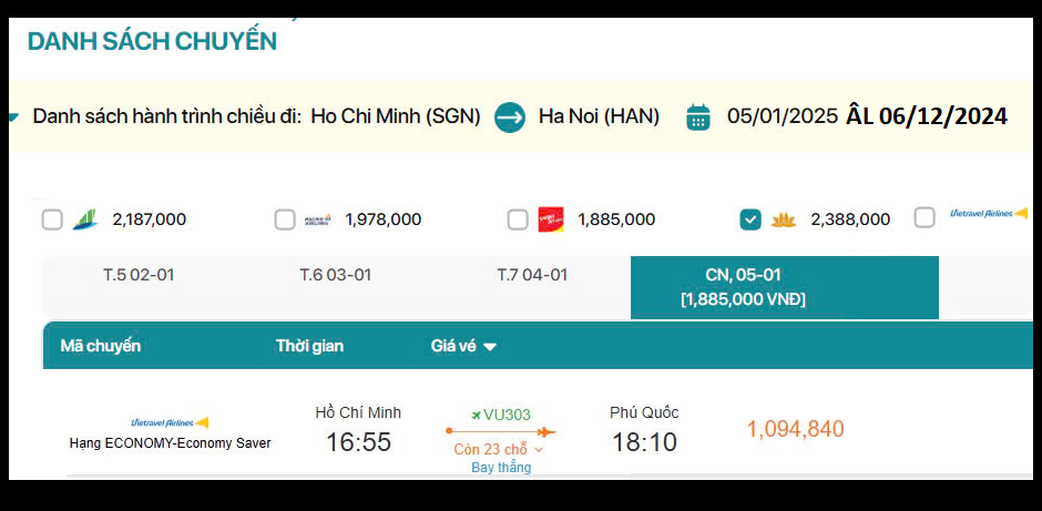 Hồ Chí Minh - Phú Quốc 05/01/2025 ÂL 06/12/2024 Số 3