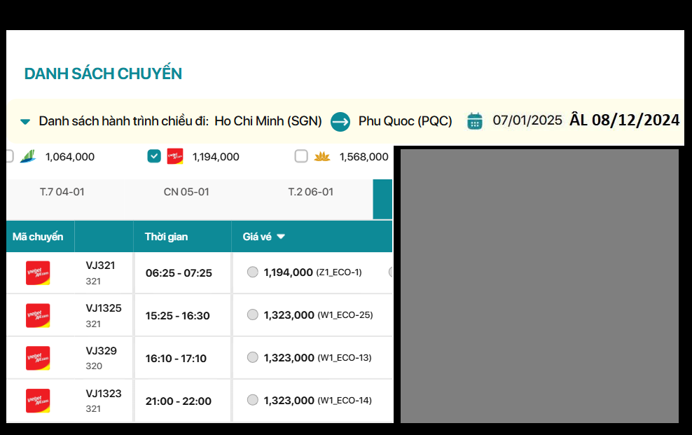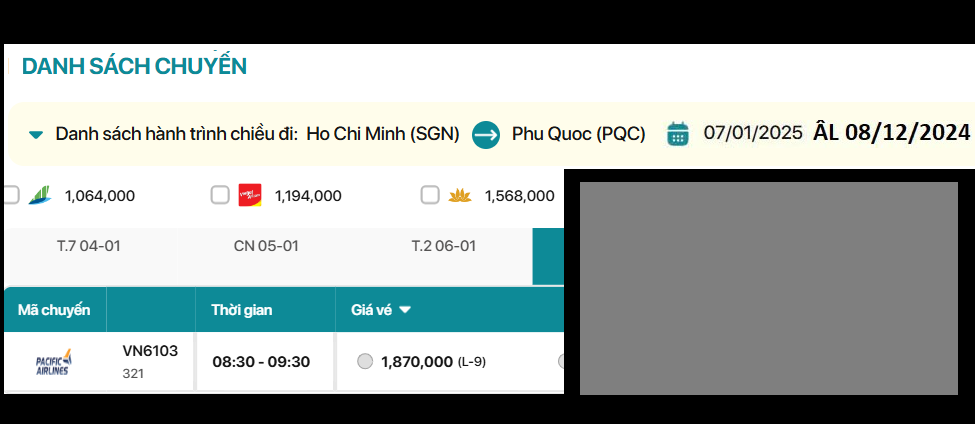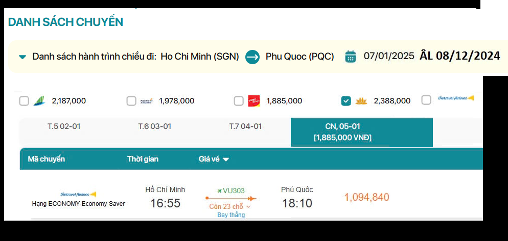 Hồ Chí Minh - Phú Quốc 07/01/2025 ÂL 08/12/2024