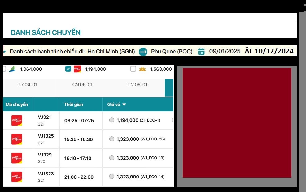 Hãng Vietjet Air VJ321 Bay thẳng Hạng Eco 06:25-07:25 vé máy bay 1,194,000