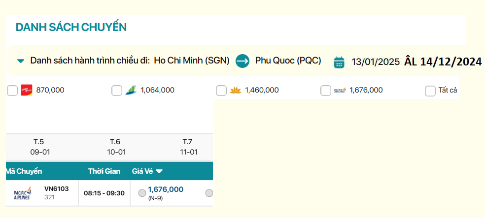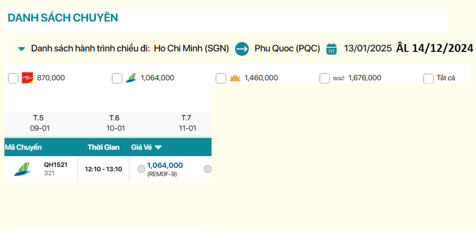 Hồ Chí Minh - Phú Quốc 13/01/2025 ÂL 14/12/2024 sô 1