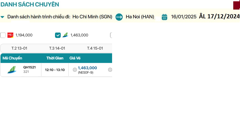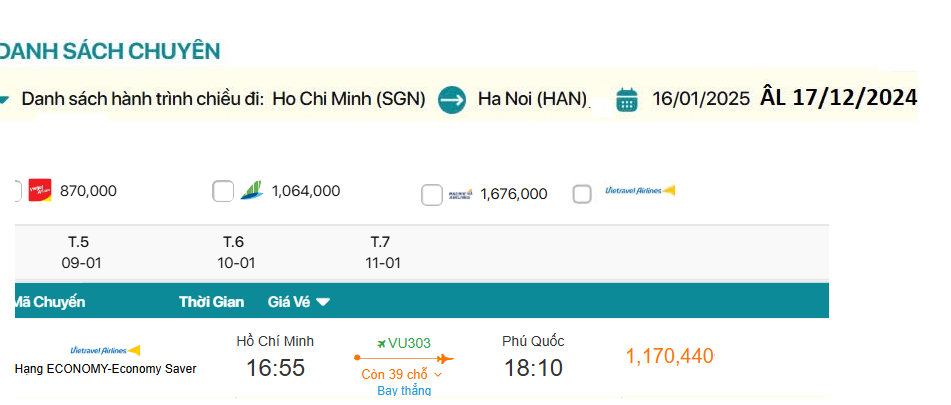 Hồ Chí Minh - Phú Quốc 16/01/2025 ÂL 17/12/2024