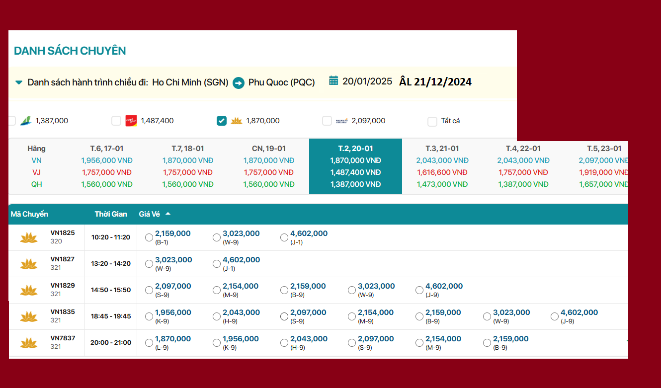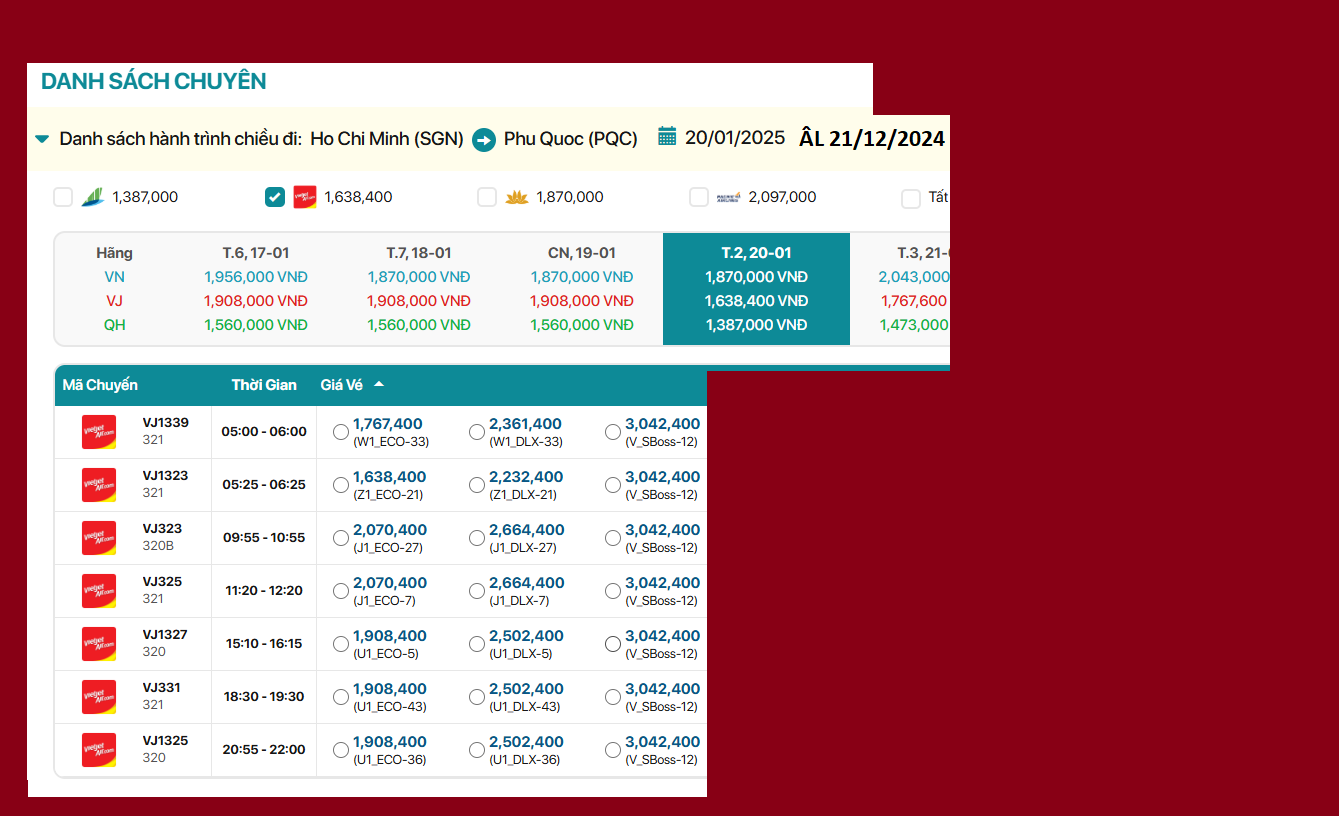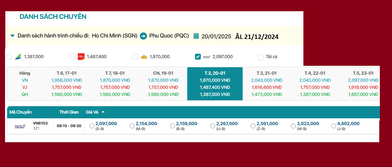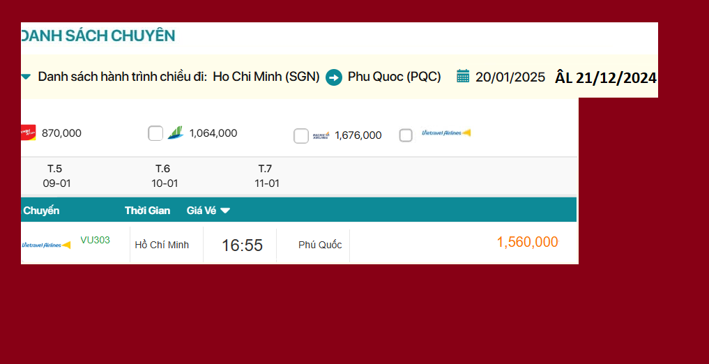 Hồ Chí Minh - Phú Quốc 20/01/2025 ÂL 21/12/2024