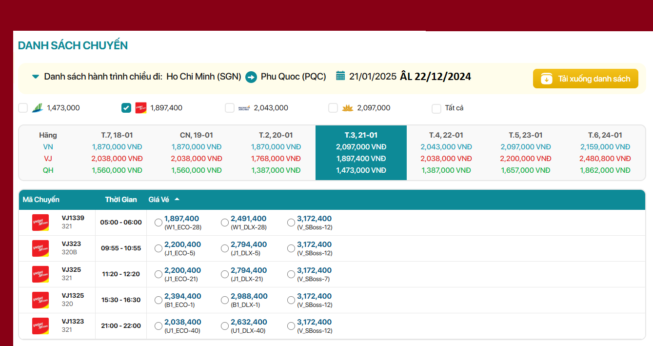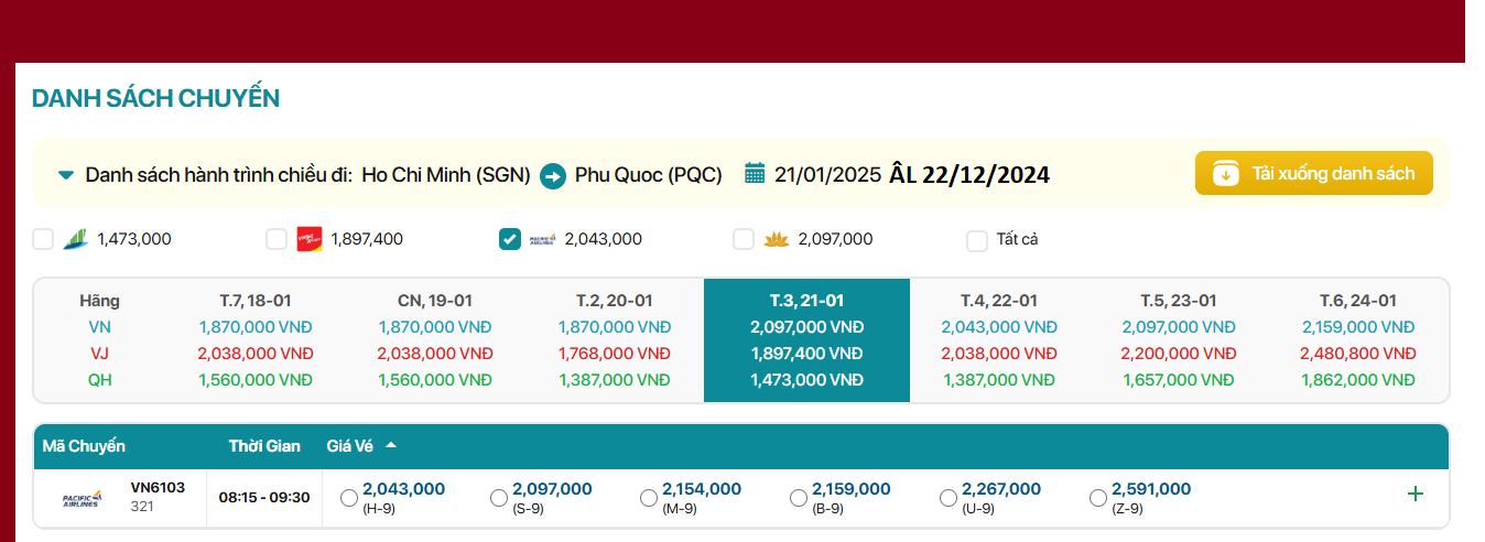 Hồ Chí Minh - Phú Quốc 21/01/2025 ÂL 22/12/2024