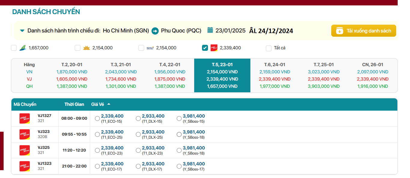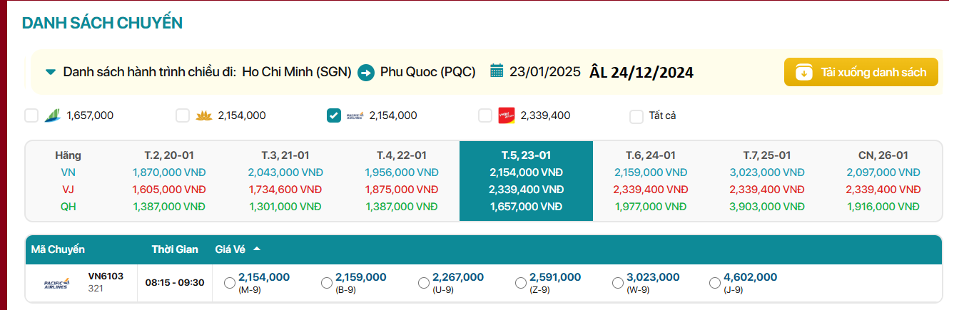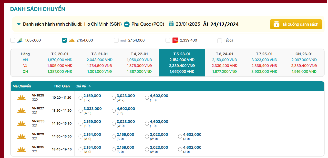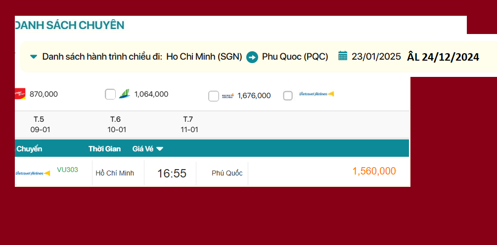Hồ Chí Minh - Phú Quốc 23/01/2025 ÂL 24/12/2024