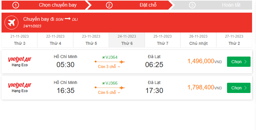 Hồ Chí Minh (SGN) Đến Đà Lạt thứ sáu 24-11-2023