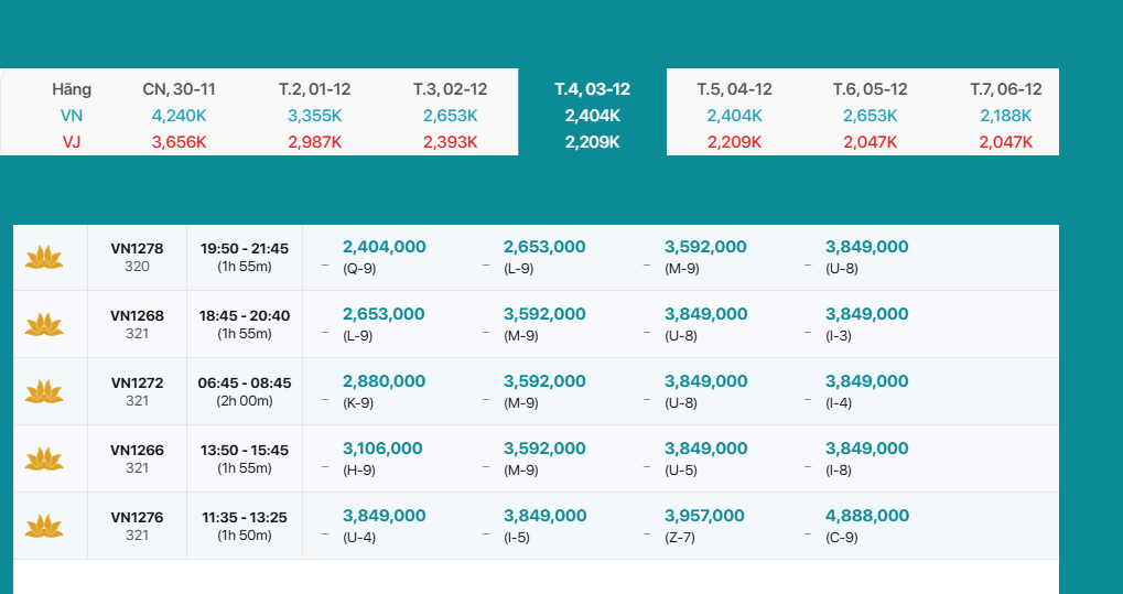 VJ240 05:10-07:10 Vé Máy Bay 2,047,000