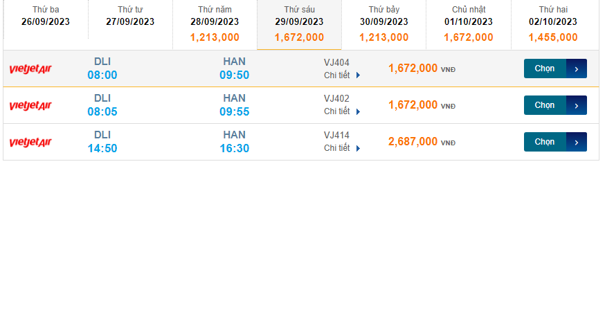 Liên Khương (DLI) đến Nội Bài (HAN) chủ nhật 29/09/2023
