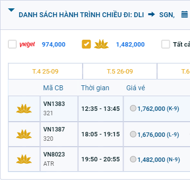 Liên Khương (DLI) - Tân Sơn Nhất (SGN) 28/09/2024