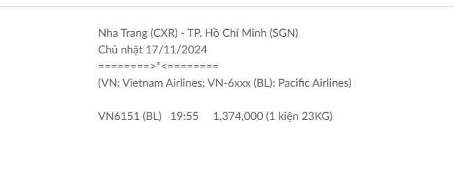 Nha Trang (CXR) - TP. Hồ Chí Minh (SGN) Chủ nhật 17/11/2024