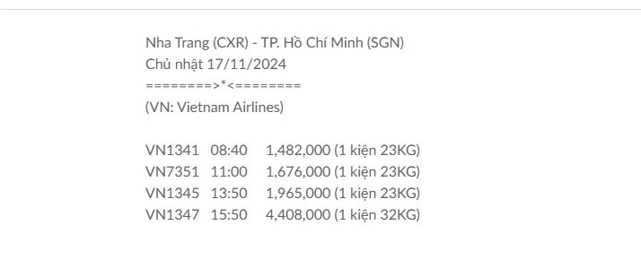 VN1347 -> 15:50 vé máy bay 4,408,000 (1 kiện 32KG)