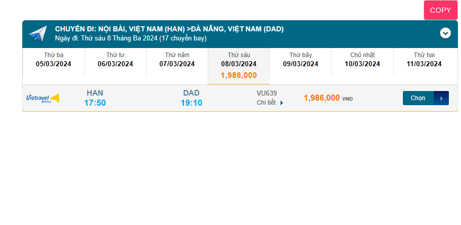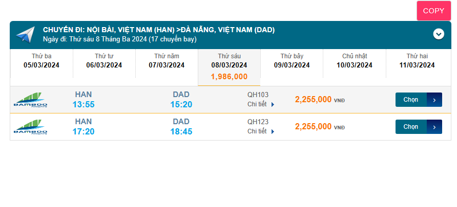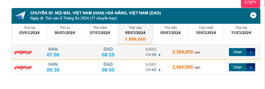 Nội Bài (HAN) - Đà Nẵng (DAD) 08/03/2024