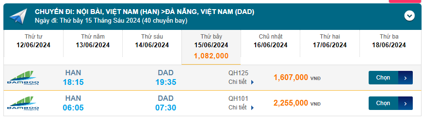 Hãng Bamboo Airways QH125 18:15 giá vé máy bay 1,607K