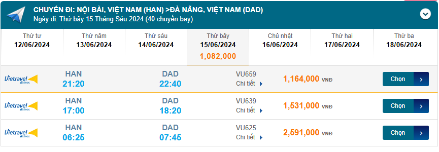 Nội Bài (HAN) - Đà Nẵng (DAD) 15/06/2024