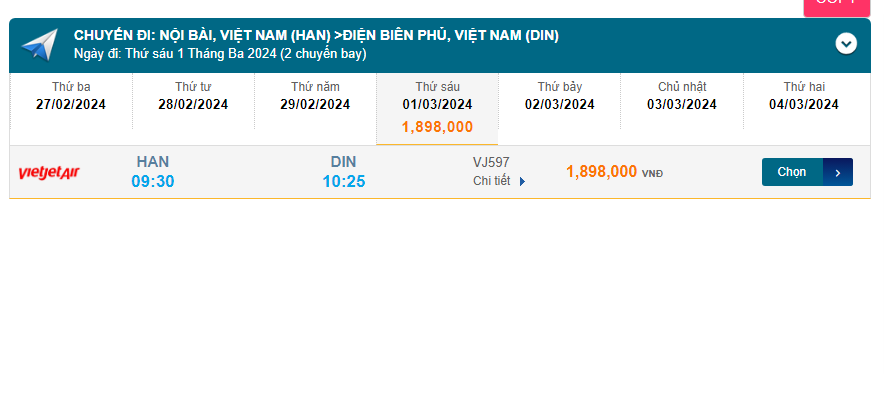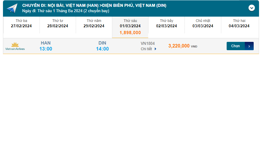 Nội Bài (HAN) - Điện Biên Phủ (DIN) 01/03/2024