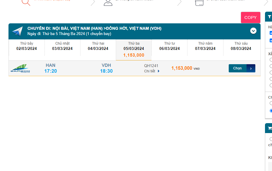 Nội Bài (HAN) - Đồng Hới (VDH) 05/03/2024