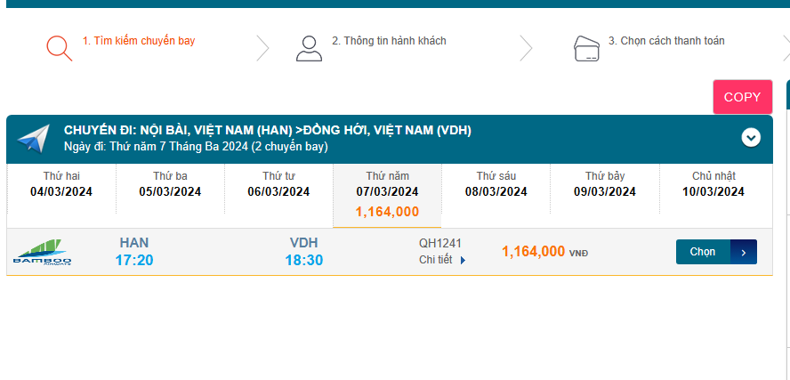 Nội Bài (HAN) - Đồng Hới (VDH) 07/03/2024