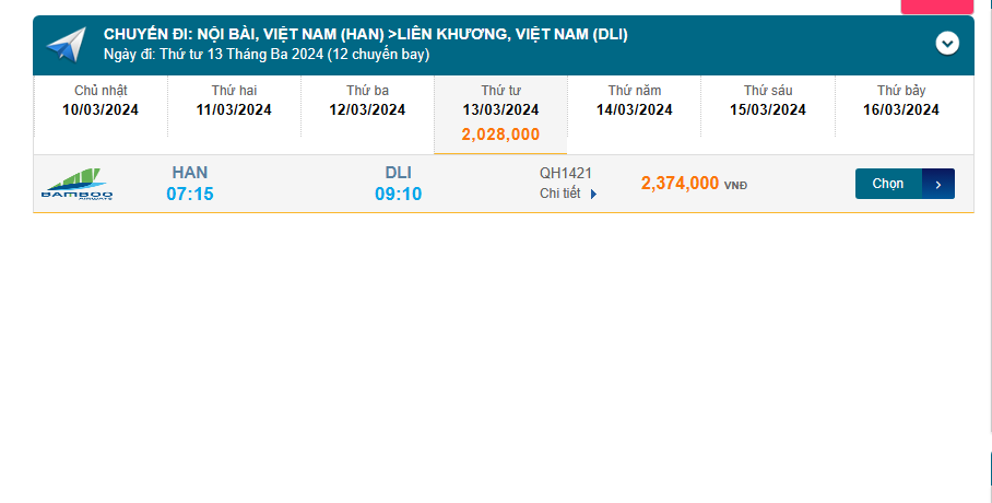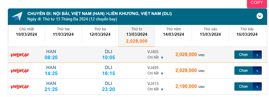 Nội Bài (HAN) - Liên Khương (DLI) 13/03/2024