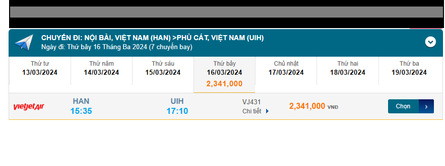 Nội Bài (HAN) - Phù Cát (UIH) 16/03/2024