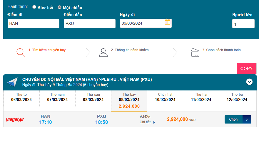 Nội Bài (HAN) - Pleiku (PXU) 09/03/2024