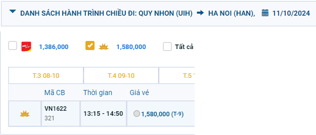 Phù Cát (UIH) - Nội Bài (HAN) 11/10/2024