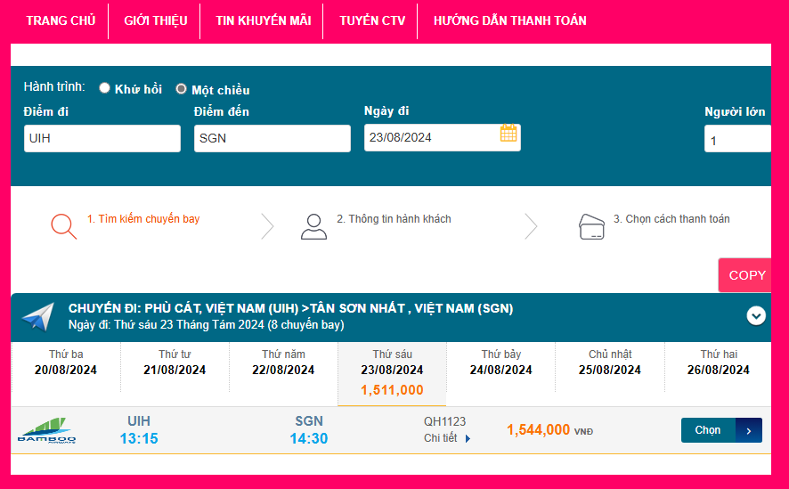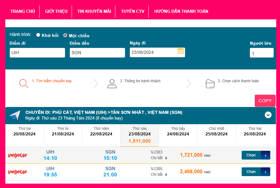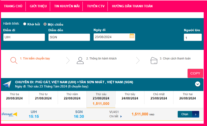 Phù Cát (UIH) - Tân Sơn Nhất (SGN) 23/08/2024