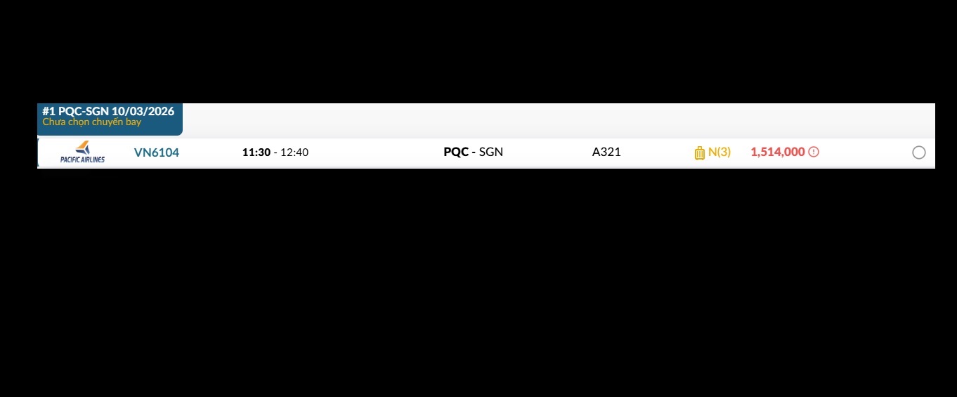 Phú Quốc (PQC) - TP. Hồ Chí Minh (SGN) Thứ ba 10/03/2026