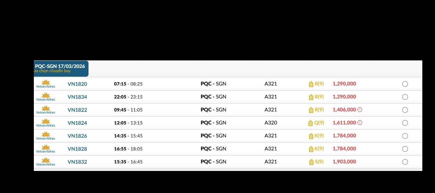 Phú Quốc (PQC) - TP. Hồ Chí Minh (SGN) Thứ ba 17/03/2026
