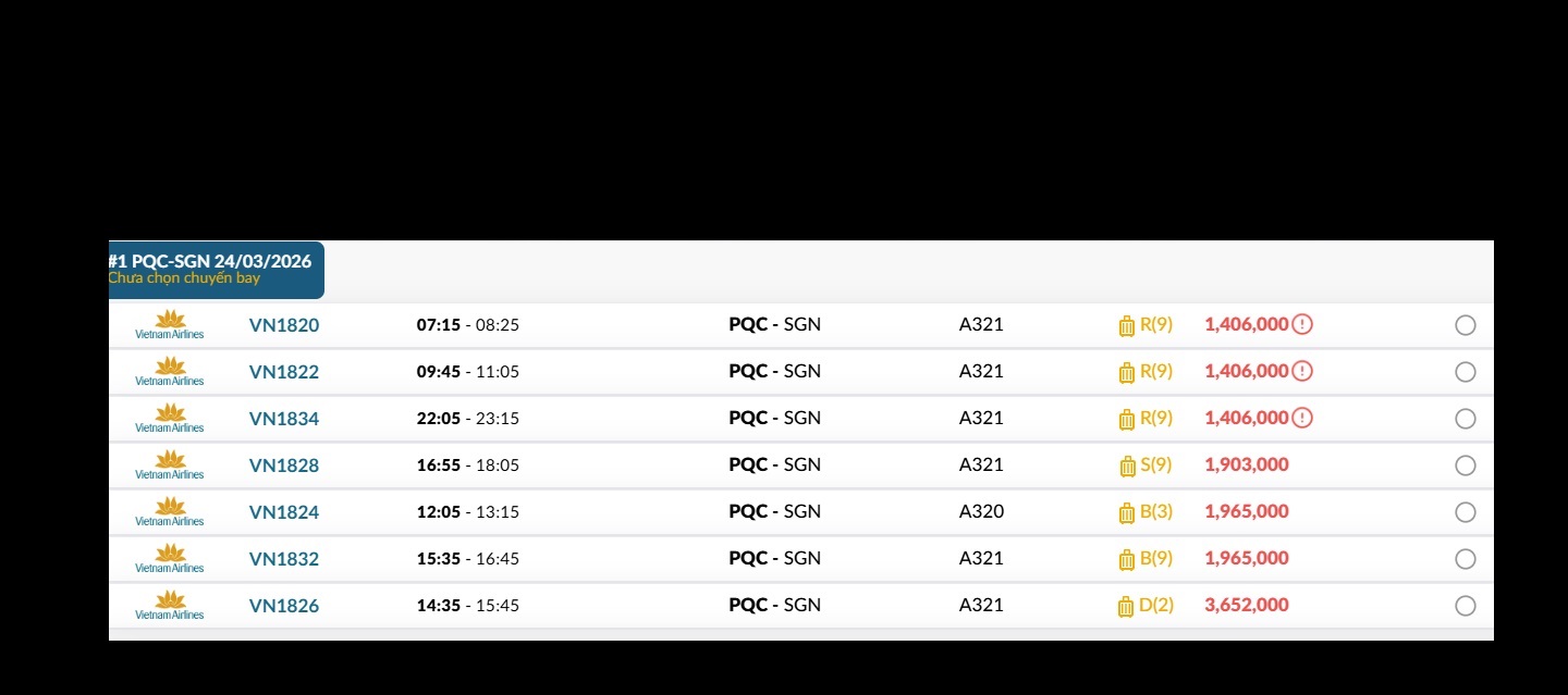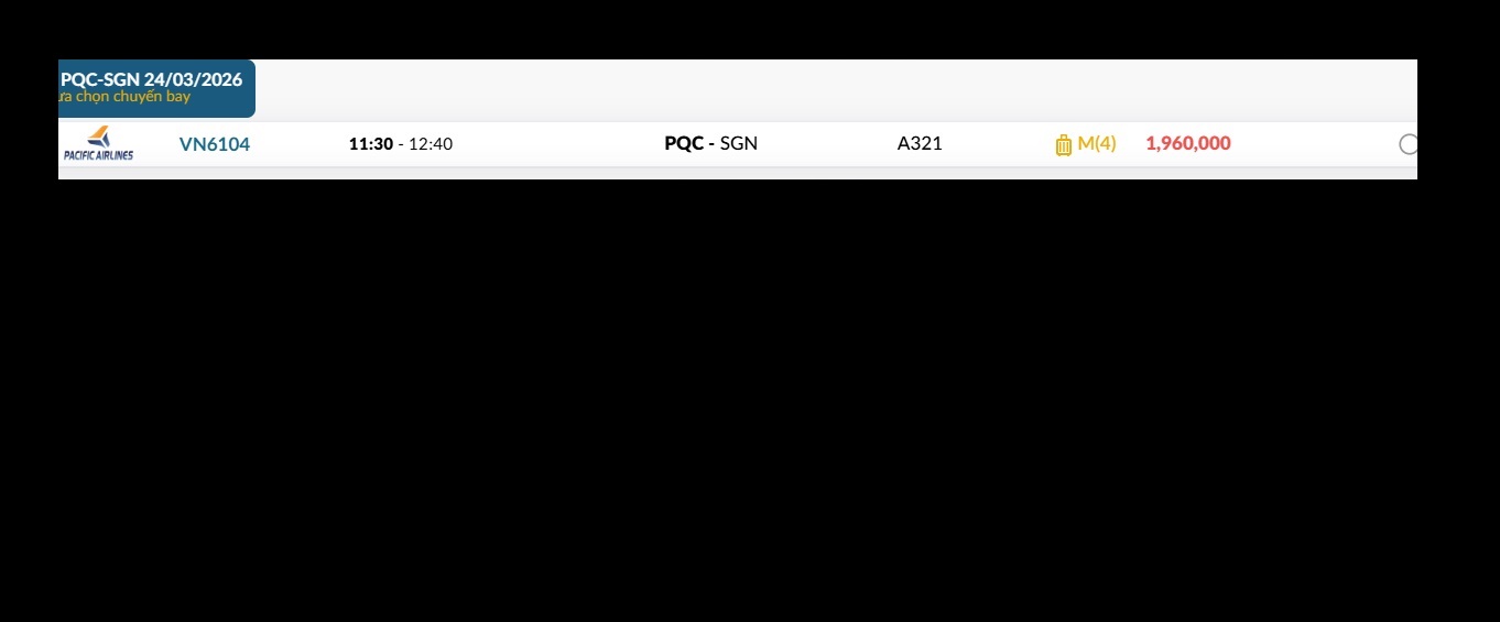 Phú Quốc (PQC) - TP. Hồ Chí Minh (SGN) Thứ ba 24/03/2026