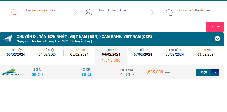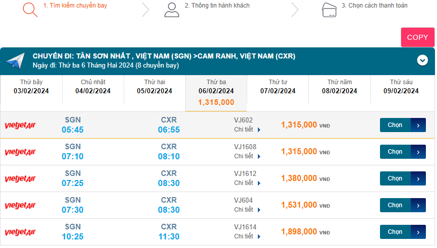 Tân Sơn Nhất - Cam Ranh (CXR) 06/02/2024 Mồng 27/12/2023