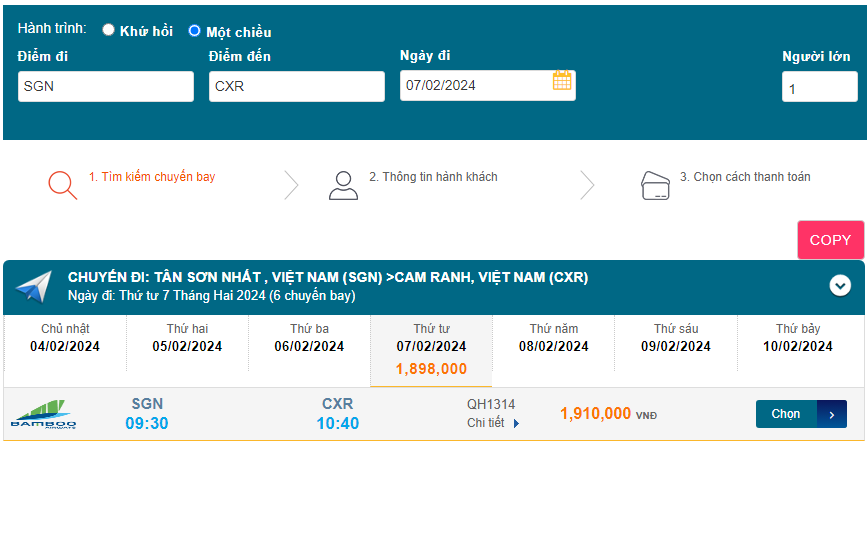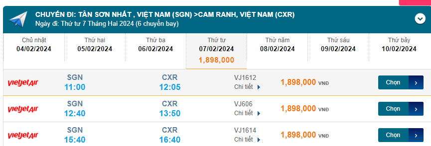 Tân Sơn Nhất - Cam Ranh (CXR) 07/02/2024 Mồng 28/12/2023