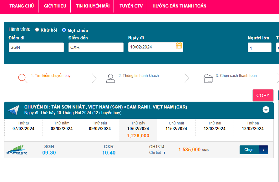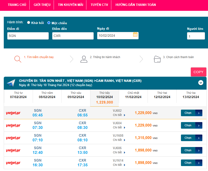 Tân Sơn Nhất - Cam Ranh (CXR) 10/02/2024 Mồng 01/01/2024