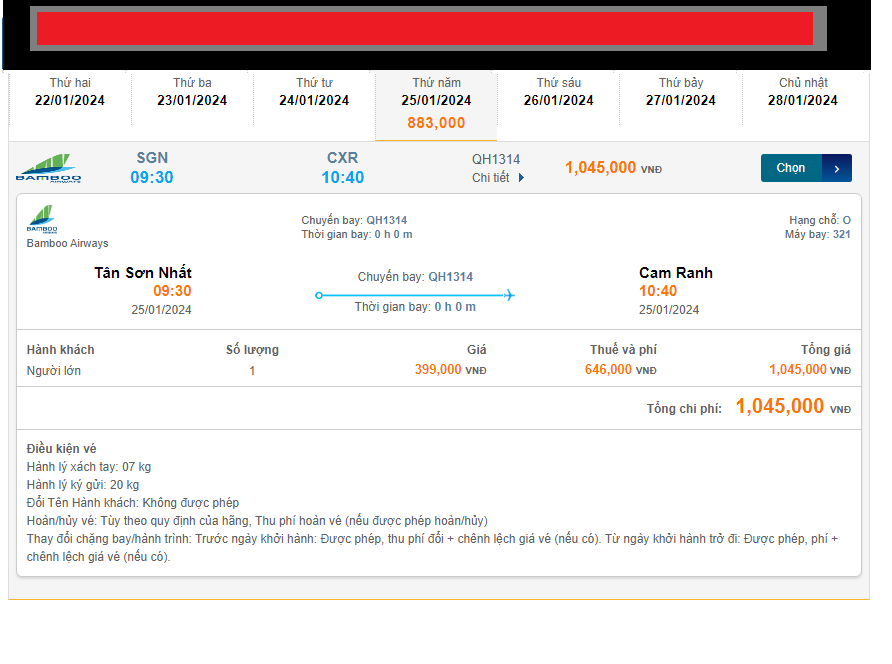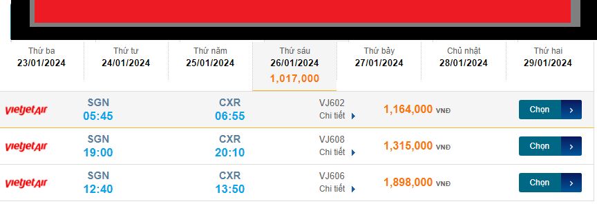 Tân Sơn Nhất - Cam Ranh (CXR) 26/01/2024 Mồng 16/12/2023
