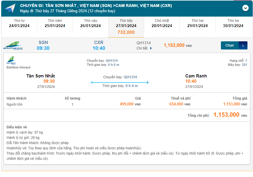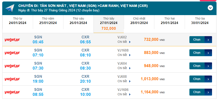 Tân Sơn Nhất - Cam Ranh (CXR) 27/01/2024 Mồng 17/12/2023