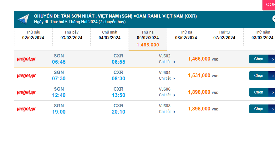 Tân Sơn Nhất- Cam Ranh(CXR) 05/02/2024 Mồng 26/12/2023
