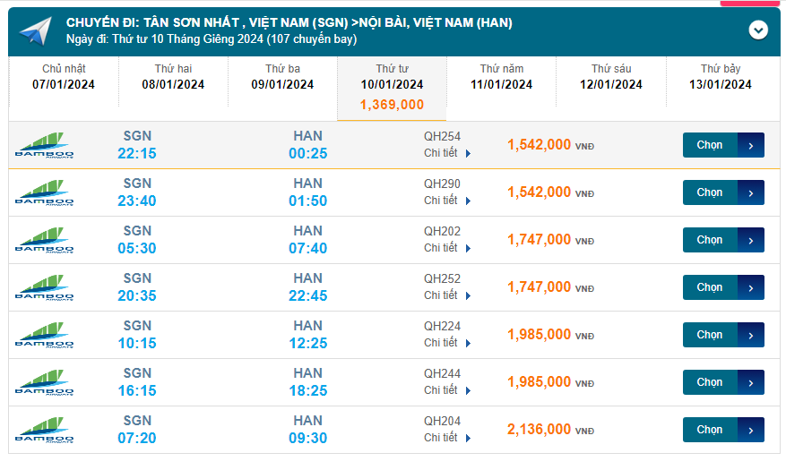 Hãng Bamboo Airways QH224 -> 10:15 giá vé máy bay 1,985K