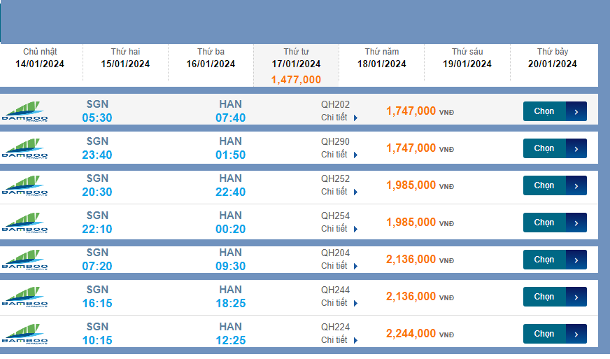 Hãng Bamboo Airway QH202 -> 05 : 30 giá vé máy bay 1,747K