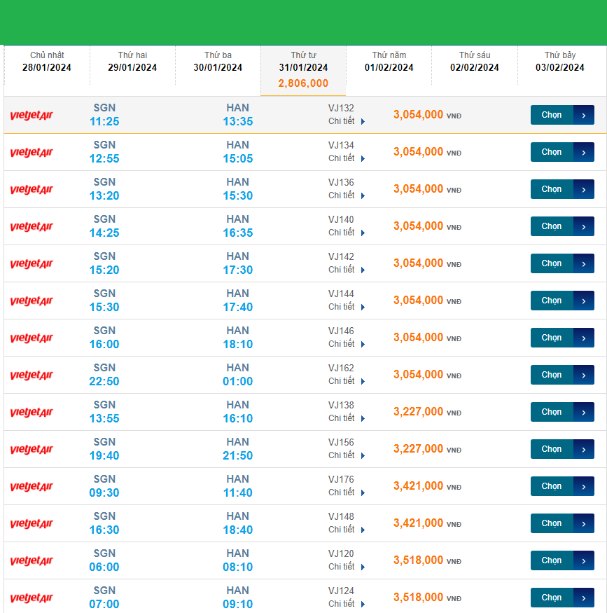 Hãng Vietjet Air VJ132 -> 11 : 25 giá vé máy bay 3,054K