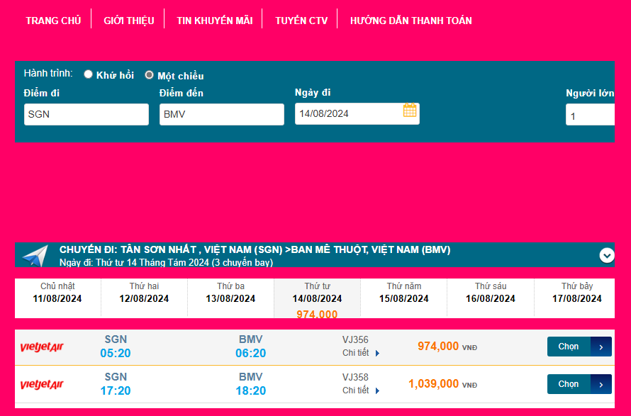 Tân Sơn Nhất (SGN) - Ban Mê Thuột (BMV) 14/08/2024