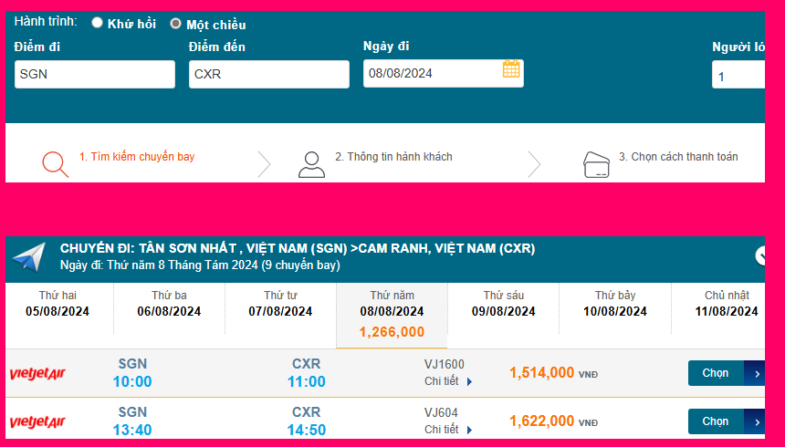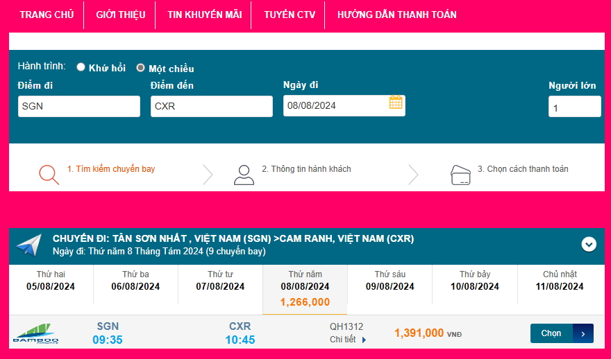 Tân Sơn Nhất (SGN) - Cam Ranh (CXR) 08/08/2024