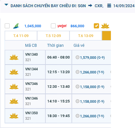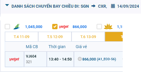 Tân Sơn Nhất (SGN) - Cam Ranh (CXR) 14/09/2024