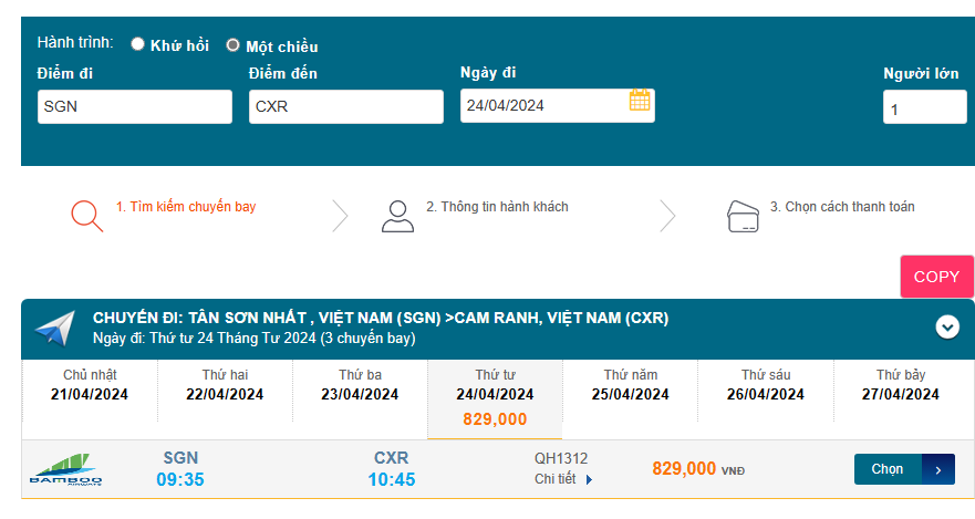 Tân Sơn Nhất (SGN) - Cam Ranh (CXR) 24/04/2024 lần 1
