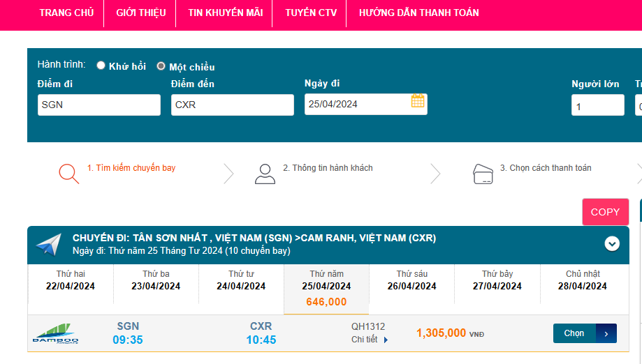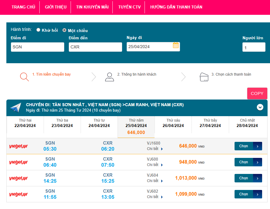 Tân Sơn Nhất (SGN) - Cam Ranh (CXR) 25/04/2024 lần 2