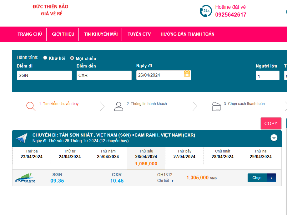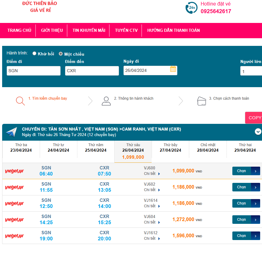 Tân Sơn Nhất (SGN) - Cam Ranh (CXR) 26/04/2024 lần 3