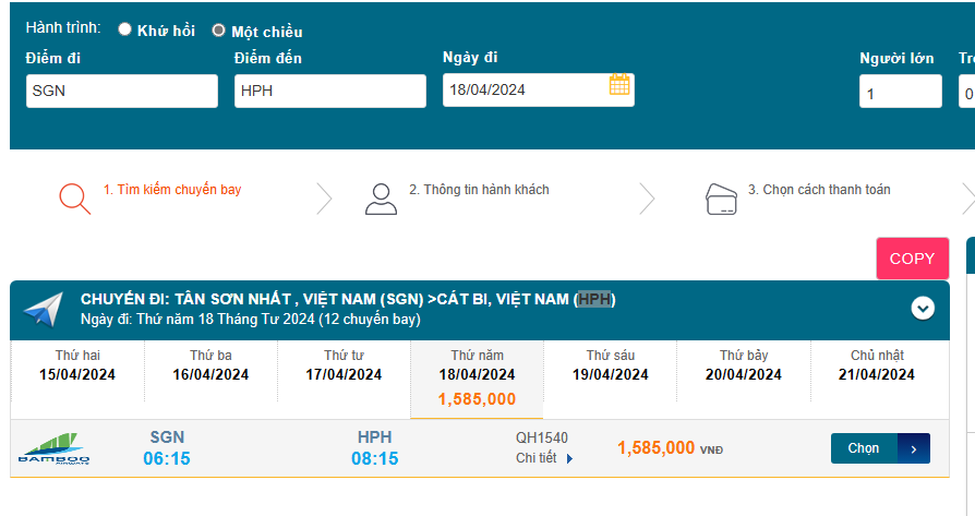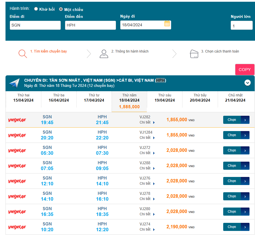 Tân Sơn Nhất (SGN) - Cát Bi (HPH) 18/04/2024
