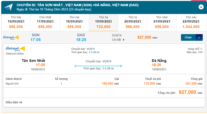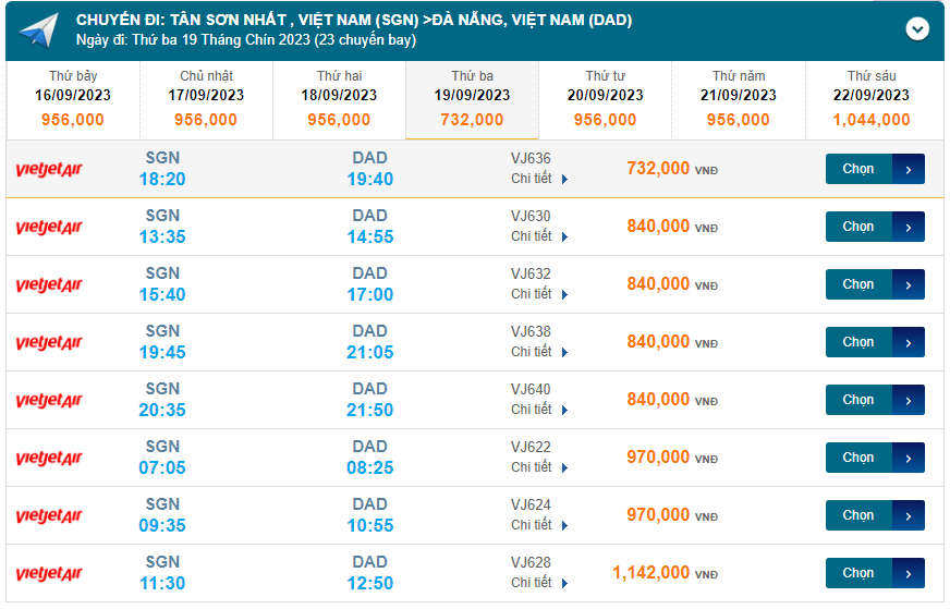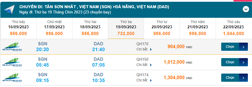 Tân Sơn Nhất (SGN) đến Đà Nẵng (DAD) thứ ba 19/09/2023