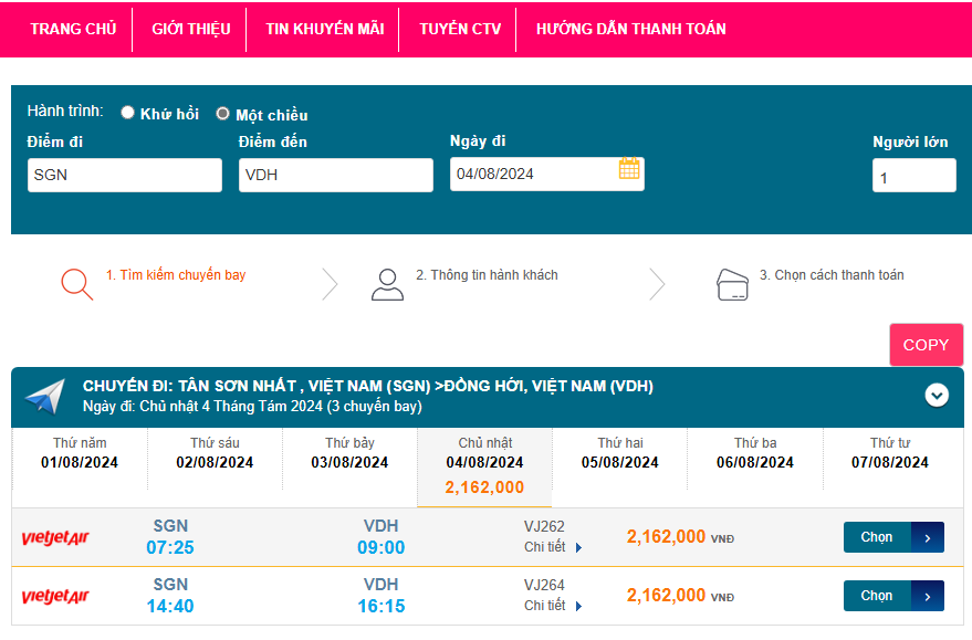 Tân Sơn Nhất (SGN) - Đồng Hới (VDH) 04/08/2024