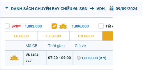 Tân Sơn Nhất (SGN) - Đồng Hới (VDH) 09/09/2024