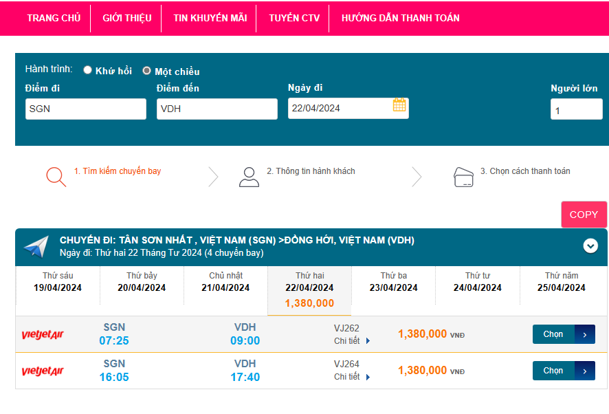 Tân Sơn Nhất (SGN) - Đồng Hới (VDH) 22/04/2024
