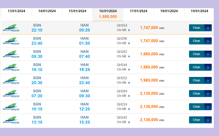 Hãng Bamboo Airway QH202 -> 05 : 30 giá vé máy bay 1,985K